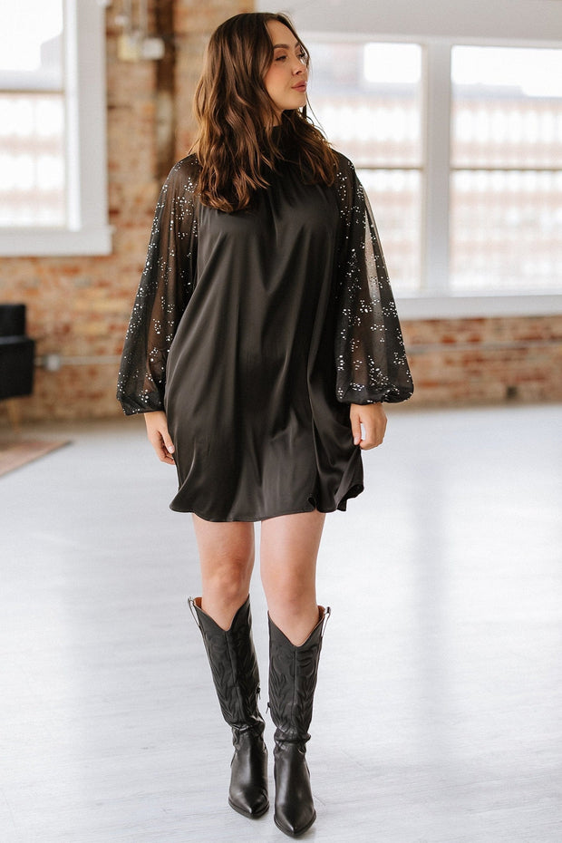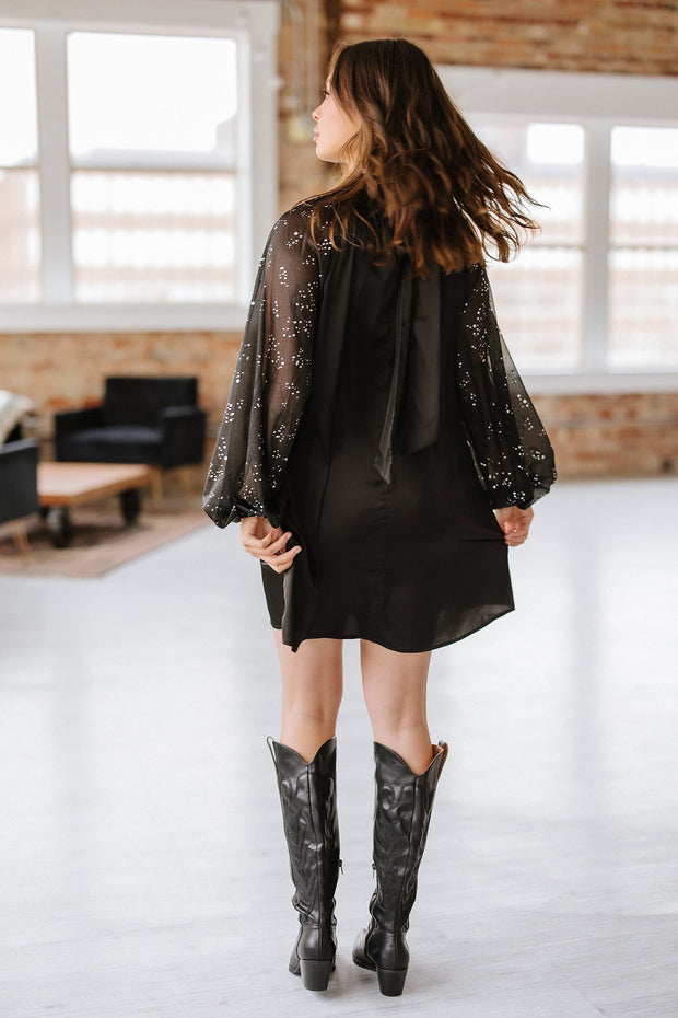 SALE - Camryn Rhinestone Mesh Sleeve Mini Dress